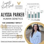 Aug. 28, 2025—Congrats, Dr. Parker! Who: Alyssa Parker, PhD Department: Human Genetics PI Mentor: Dr. Alexander Bick & Dr. Digna Velez Edwards Research: I have developed novel methods to detect, monitor, and treat clonal hematopoiesis. Vanderbilt Impact: “The VANTAGE sequencing core was essential for developing and deploying the sequencing assays used in my work. I am also...