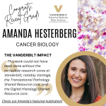 Aug. 27, 2025—Congrats, Dr. Hesterberg! Who: Amanda Hesterberg, PhD Department: Cancer Biology PI Mentor: Dr. Paula Hurley Research: My research focuses on understanding how the tumor microenvironment drives prostate cancer metastasis and how we can target those mechanisms to identify novel therapies. Vanderbilt Impact: “This work could not have been done without the incredible research cores at...