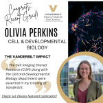 Aug. 27, 2025—Congrats, Dr. Perkins! Who: Olivia Perkins, PhD Department: Cell & Developmental Biology PI Mentor: Dr. Matthew Tyska Research: Investigating the role of clathrin-mediated endocytosis in shaping epithelial cell morphology Vanderbilt Impact: “The Cell Imaging Shared Resource (CISR) along with the Cell and Developmental Biology department were essential in my training at Vanderbilt.” Post-PhD Plans: Academic...
